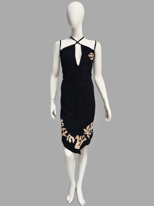 Vestido Bordado Jardín en Blanco y Negro