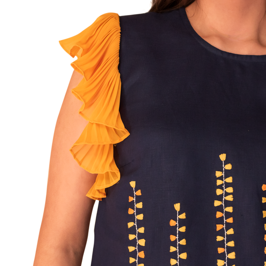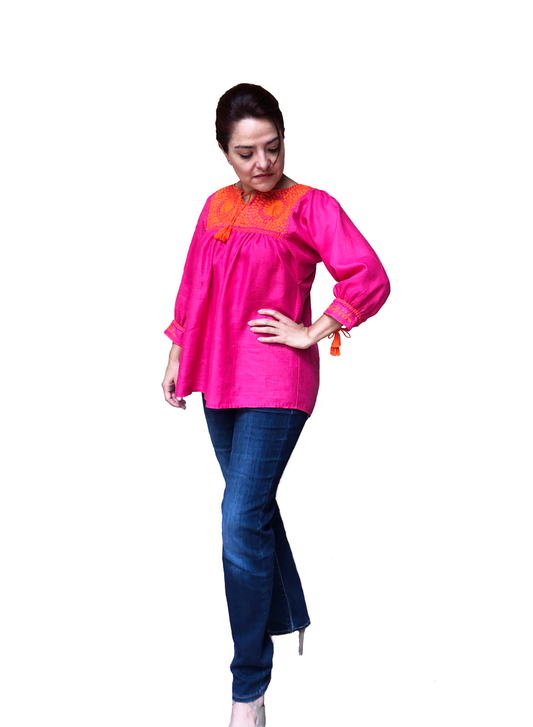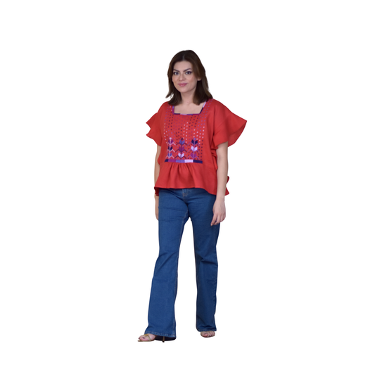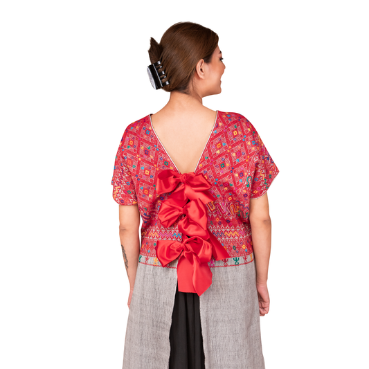 Blusa Chiapas rayón con bies multicolor telar de pedal