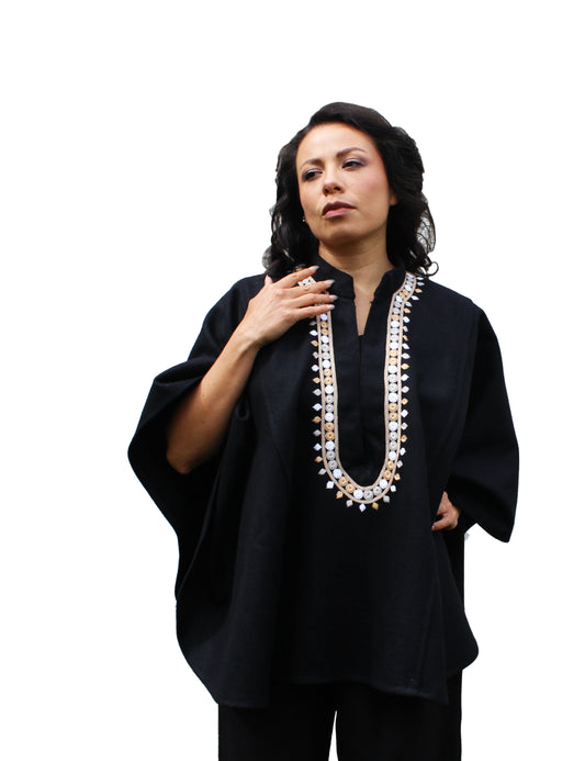Capa Chiapas de paño de lana corte redondo bord a mano