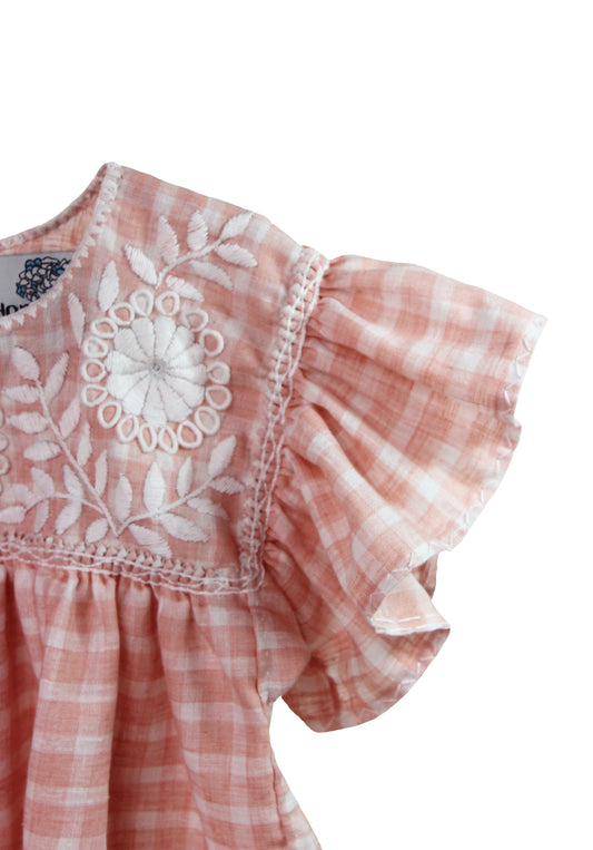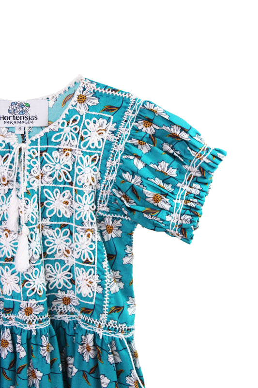 Vestido infantil de lino bordado Aguacatenango. Rojo