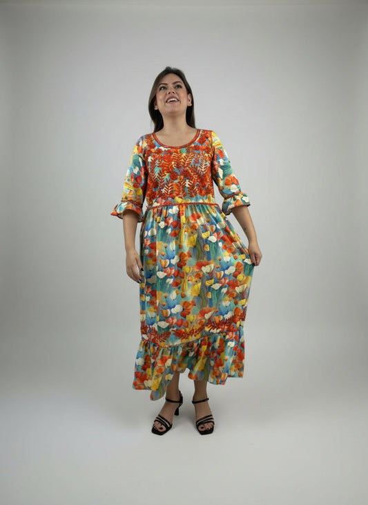 Vestido Acampanado con vuelo bordado a mano Aguacatenango