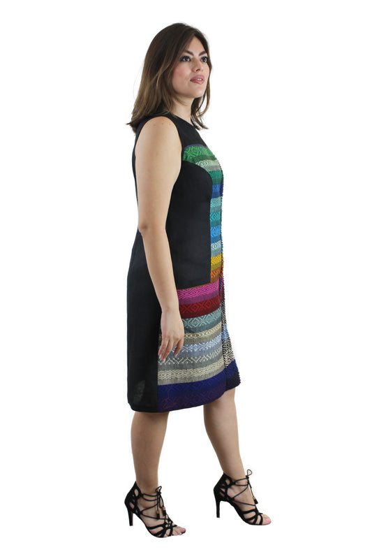 Vestido Huipil de Telar a Rayas Larrainzar Mostaza/Negro